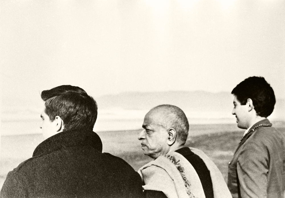Morning Walks: In the early San Francisco period, Srila Prabhupada allowed us to spend time with him all day and into the night, but morning walks were one of the most relishable, glorious times with him. I generally wanted to be on the morning walk. One of the other devotees and I used to get up at two in the morning, pick flowers in Golden Gate Park, make garlands for Srila Prabhupada, present them to him, and go on the morning walk. Those moments in the park were always very special for us, walking next to our spiritual master, trying to chant Hare Krsna just as he chanted Hare Krsna. The morning walks were japa walks, and he walked briskly, chanting Hare Krsna with his hand in his bead bag. He walked like a young man of twenty-five. The first day I went I was wearing wooden yogi shoes, and my feet bled because Srila Prabhupada was walking on and on very fast.