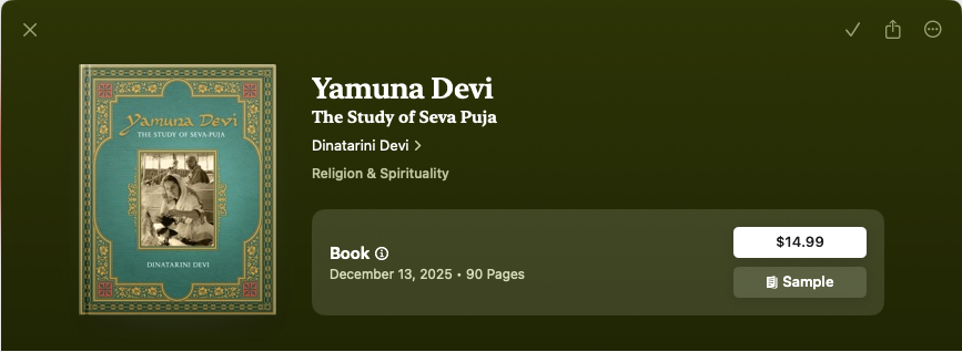A historical gem, detailing Yamuna Devi’s studies in Deity worship from the early 1970″s, including her extensive India studies with temple sevaites and her later years of worship of Sri Sri Radha-Banabehari.